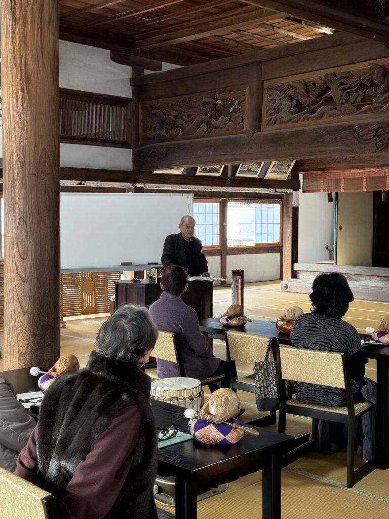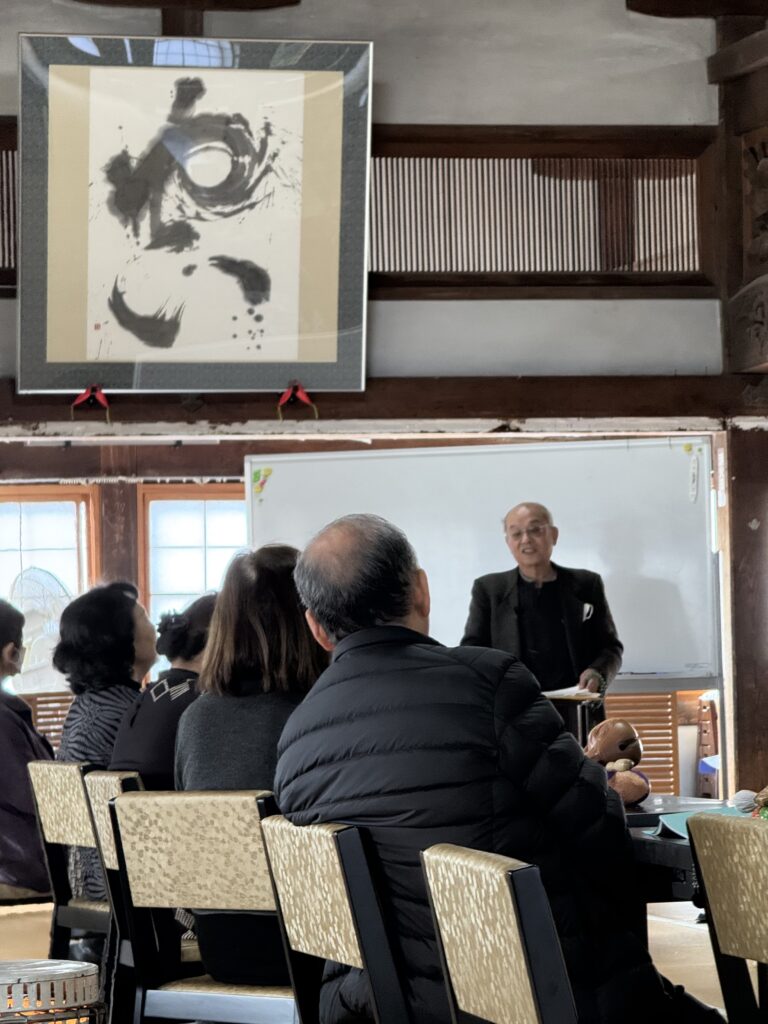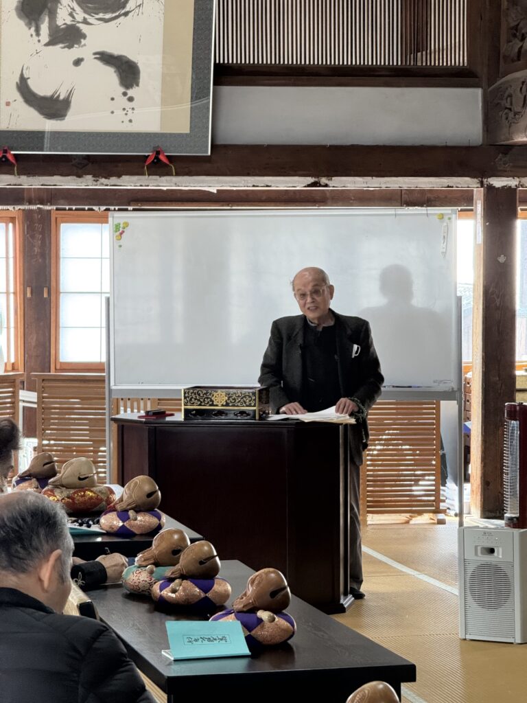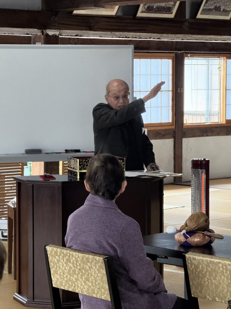 2月の光明会では、皆さまとお念仏をお唱えした後、谷村様より周防大島の寺院の歴史や御体験に基づくご講演をいただきました。